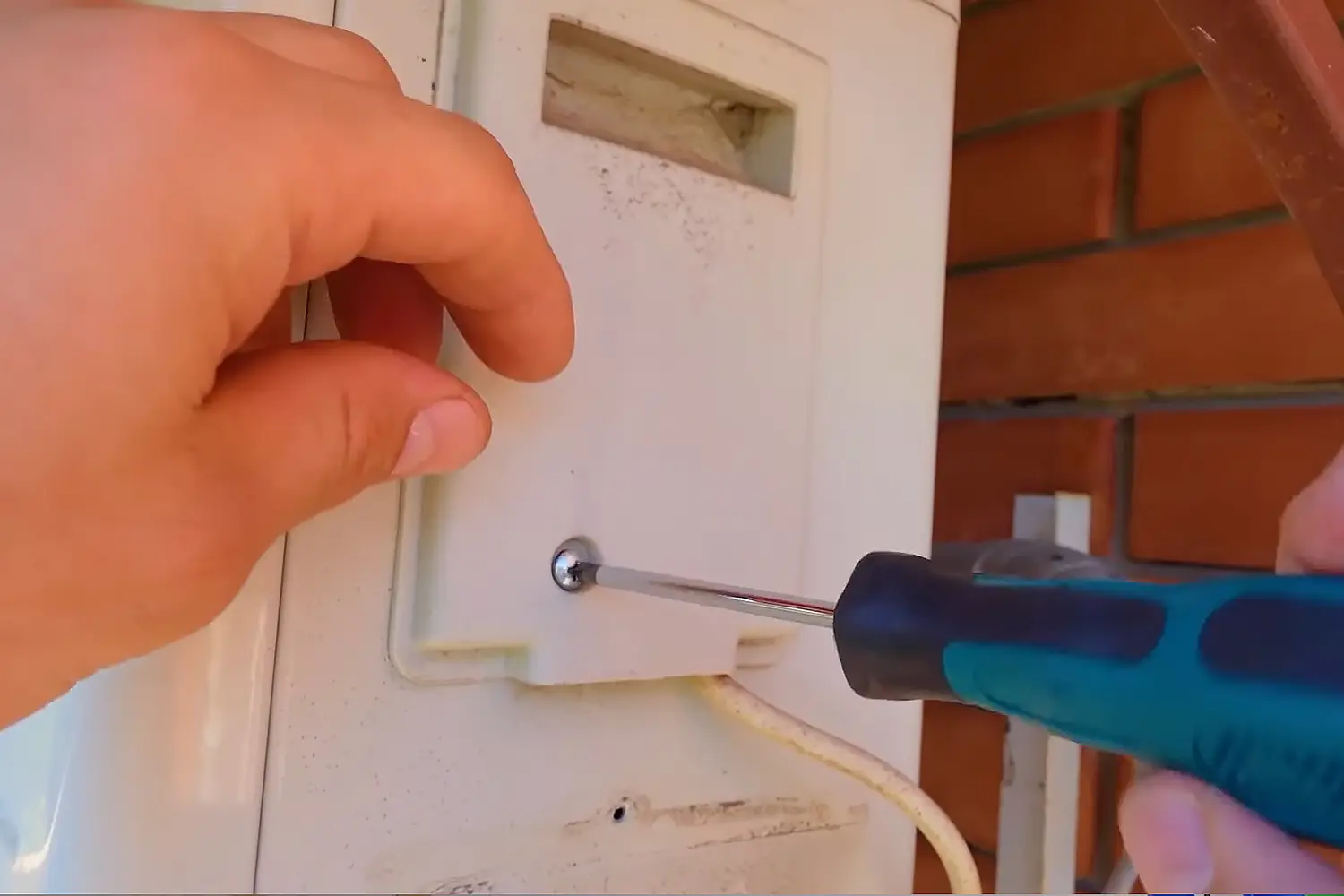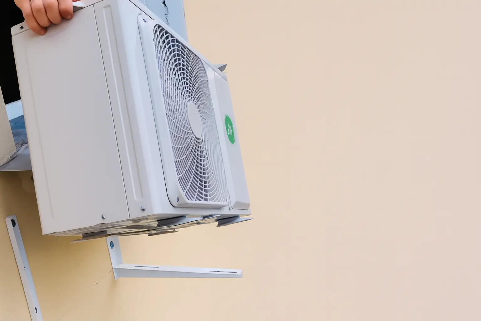 Как правило, наружный блок крепят к стене на металлические кронштейны, которые, в свою очередь, фиксируют анкерами в бетон или кирпич. Для демонтажа поддерживайте блок снизу, лучше делать это вдвоем: один держит, второй работает. Открутите крепежные болты: обычно 2–4 шт диаметром 8–12 мм проходят через ушки кронштейна в блок. Используйте накидной или гаечный ключ подходящего размера. Аккуратно приподнимите блок вверх — он снимается с кронштейнов вертикально.