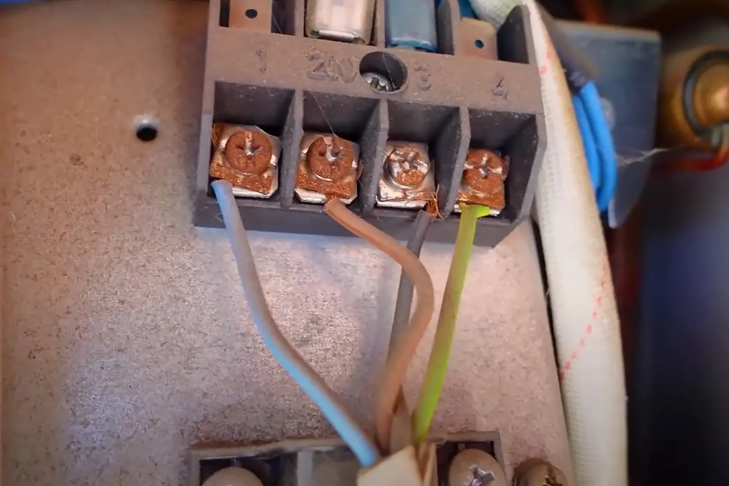 Отключите электрический блок — выкрутите шурупы, которые фиксируют контакты.