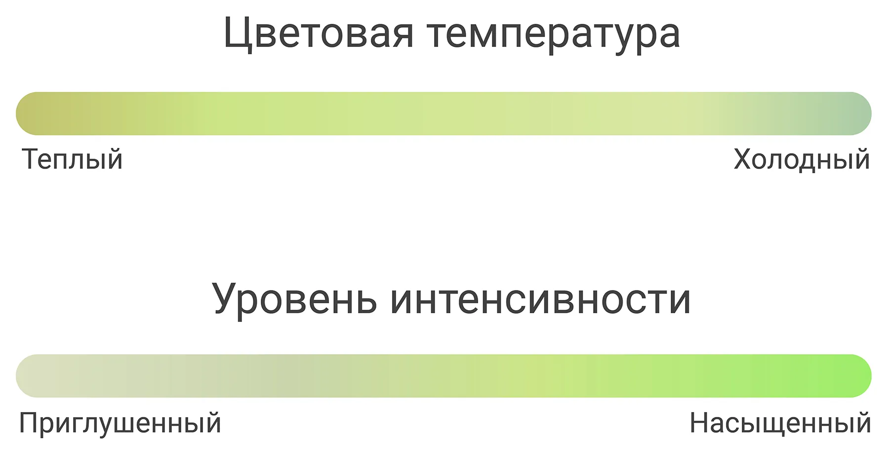 Фисташковая палитра включает теплые и холодные тона. Такое разделение определяет визуальную температуру интерьера и его эмоциональный окрас. Именно подтон диктует, будет ли комната казаться уютной и обволакивающей или же свежей и наполненной воздухом.