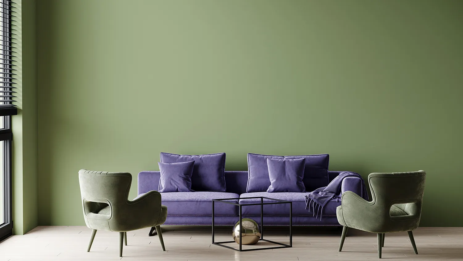 Тандем фисташкового и лавандового ― это утонченный дуэт, который привносит в интерьер нотку романтической нежности и природной гармонии. Эти оттенки создают мягкий контраст, при этом не вызывают визуального напряжения, а располагают к расслаблению и созерцанию. Особенно выигрышно такая палитра смотрится в спальнях или зонах отдыха.