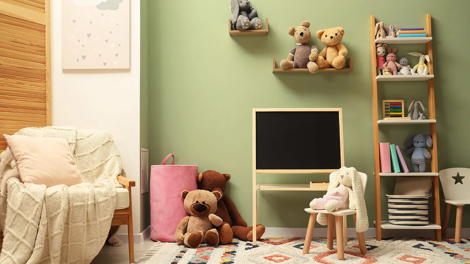 Цвет фисташки хорошо подходит для оформления пространства для ребенка. Его пастельные и приглушенные оттенки создают спокойную, ненавязчивую атмосферу, не утомляют зрение и служат мягким нейтральным фоном. Настроение комнаты можно менять, добавляя яркие детали: текстиль, коврики, игрушки или постеры.