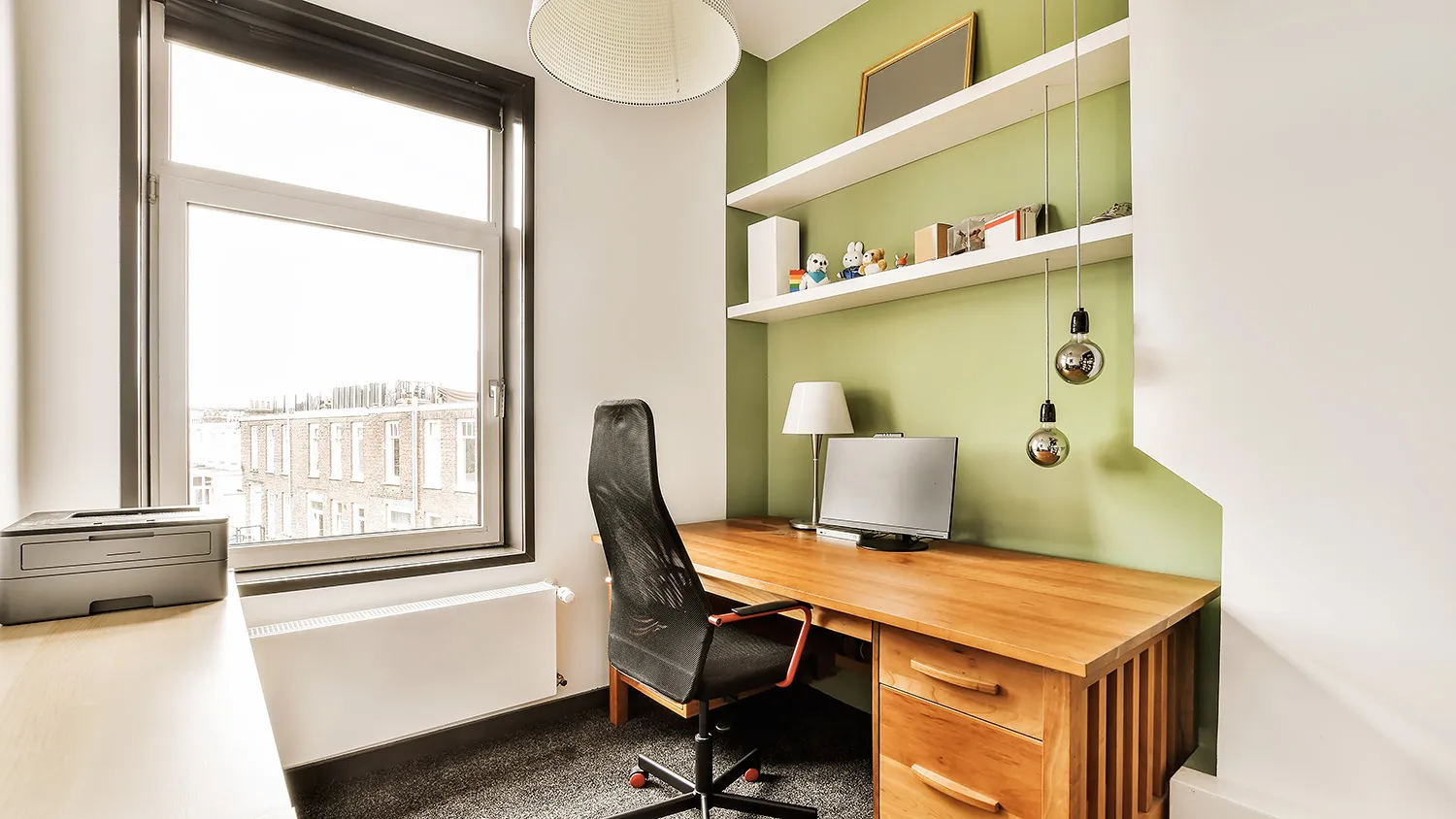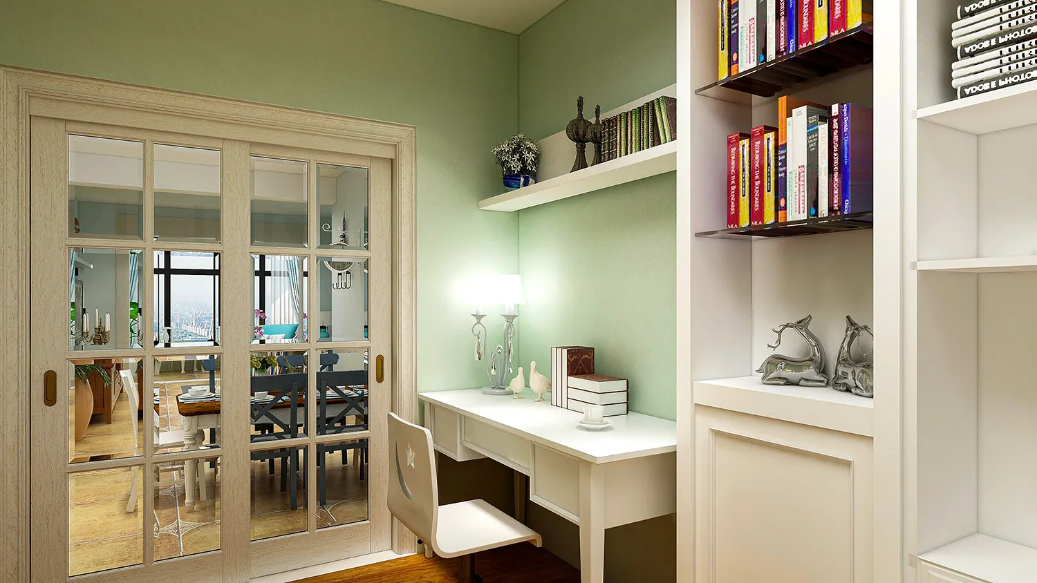 Узнайте большеЧтобы домашний кабинет был не только красивым, но и функциональным, сочетайте фисташковые оттенки с базовыми цветами. Они визуально расширяют пространство и делают его светлее. Для теплоты добавьте деревянные детали (столешницу, полки, рамы для фото), а для контраста — черные или темно‑серые аксессуары (канцелярию, светильники).