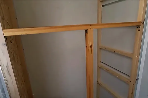 Перед сборкой шкафа убедитесь, что стены и пол в местах крепления достаточно прочные. При необходимости усильте их с помощью деревянных брусков или металлических элементов: прикрепите их к капитальной стене или плите, чтобы обеспечить устойчивость и безопасность всей конструкции.