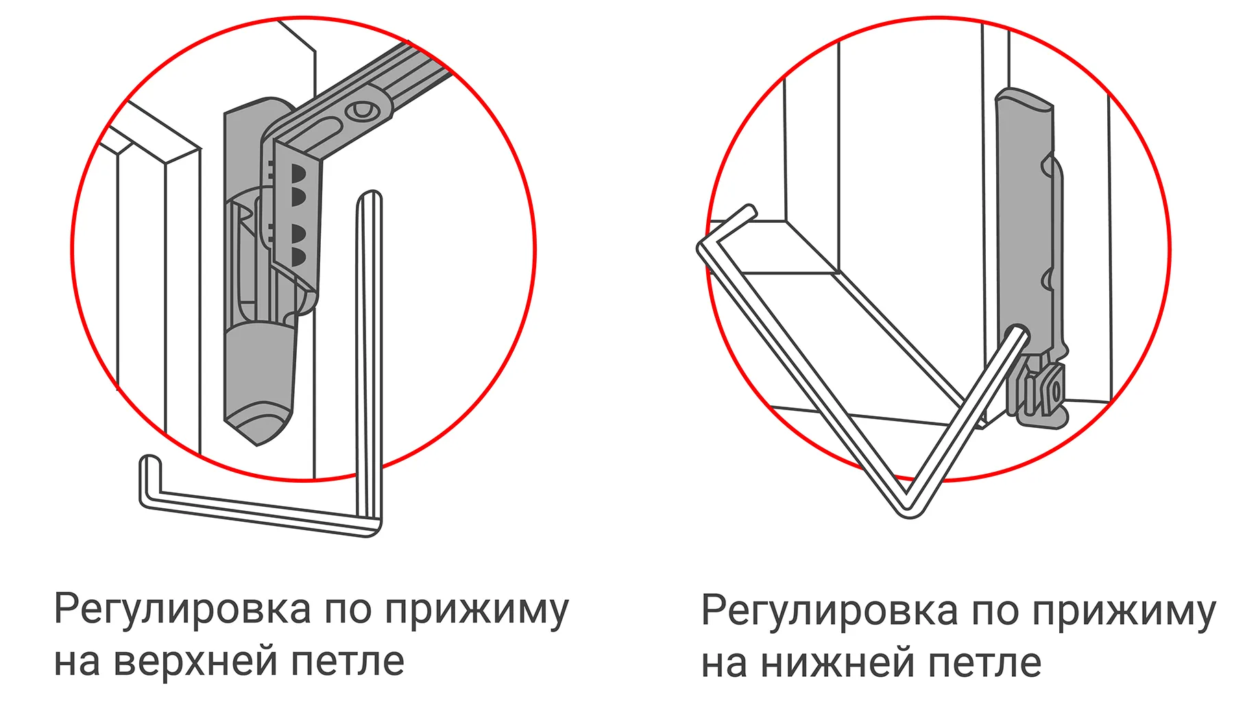 Узнайте большеЭто тоже делают с помощью шестигранника. Снимите с петель защитные колпачки и приоткройте окно. Отрегулируйте силу прижима на верхних и нижних петлях с помощью ключа. Если проворачивать его по часовой стрелке, створка будет прижиматься более плотно.