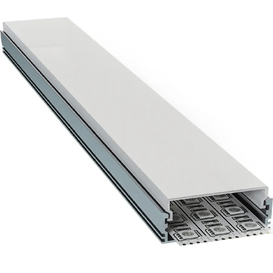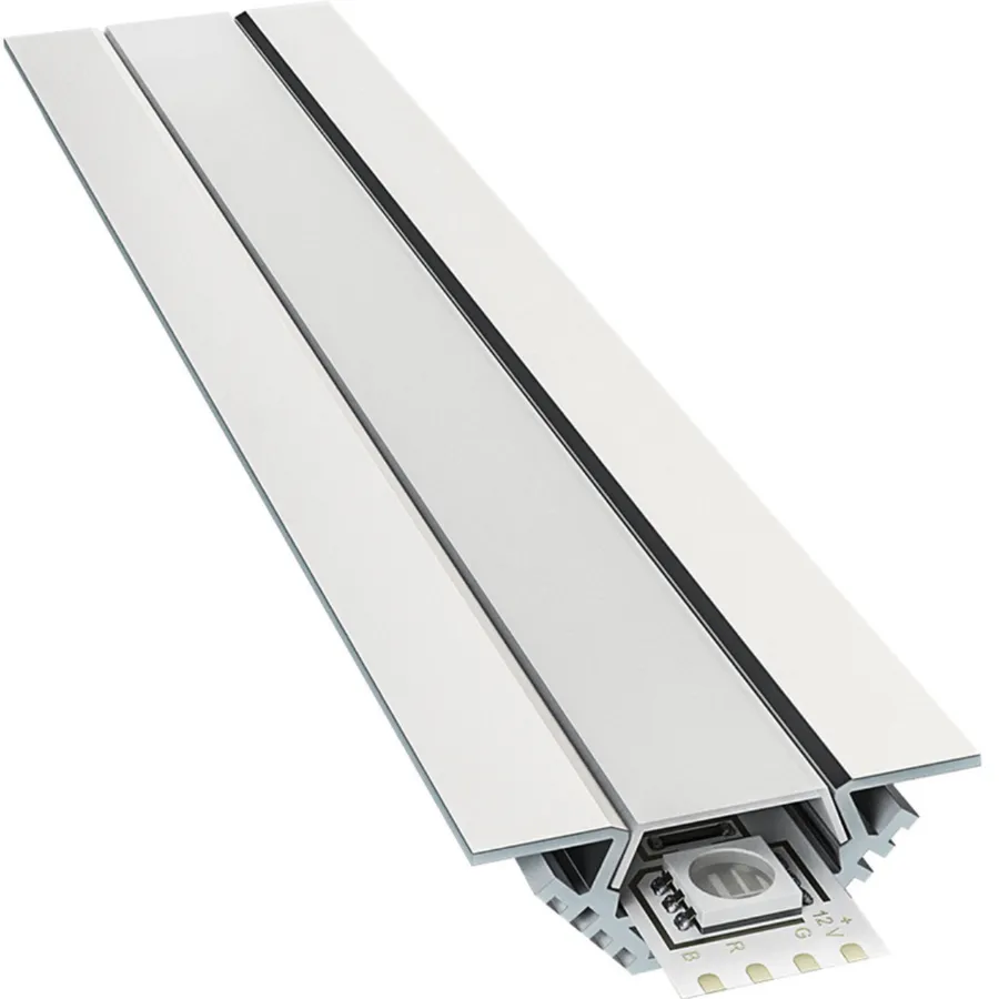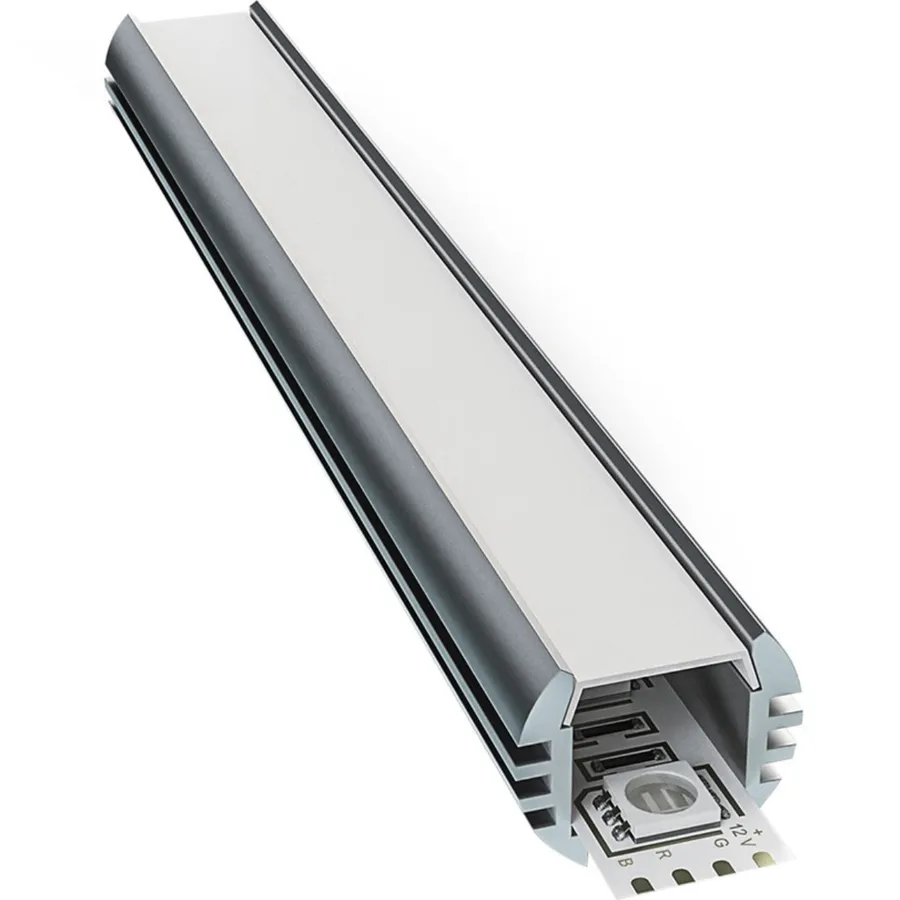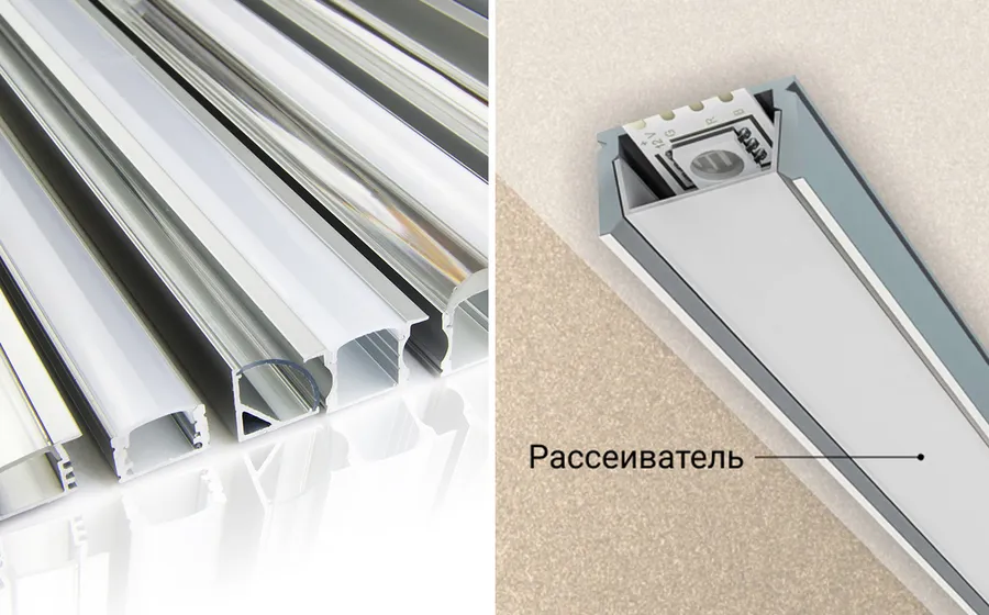 Рассеиватель обычно продается в комплекте с профилем. Он нужен для того, чтобы свет был более мягким и комфортным. Если рассеиватель не поставить, светодиодная лента будет сильно светить в глаза, особенно при угловой подсветке. Кроме того, рассеиватель выполняет защитную функцию и прикрывает светодиодную ленту от брызг и пыли.