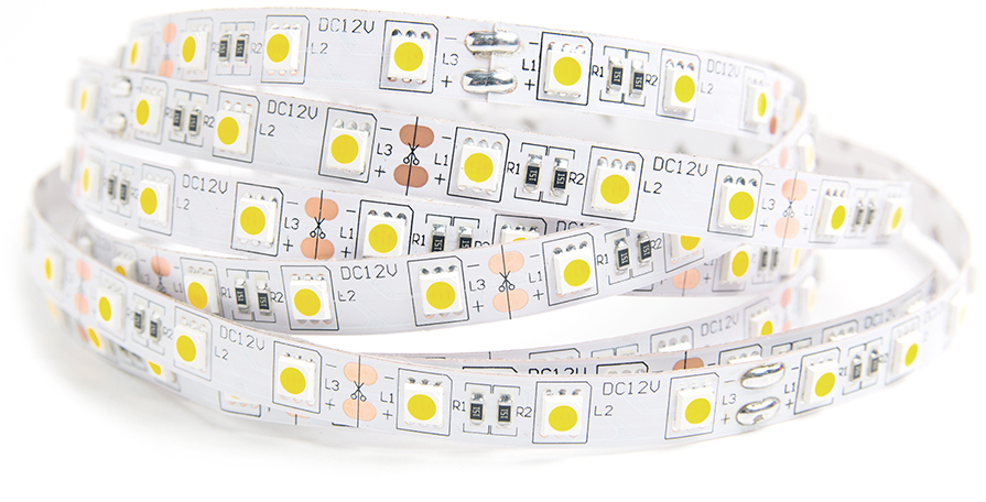 - Самые популярные изготавливаются по технологии SMD. Размер диодов и их шаг на ленте меньше, но угол обзора больше, поэтому свет распределяется равномернее.