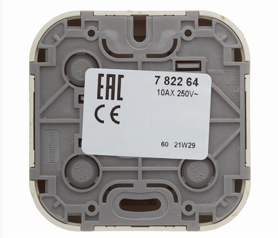 Номинальный ток этого выключателя равен 10 А, а максимальное напряжение — 250 В. Источник: petrovich.ru