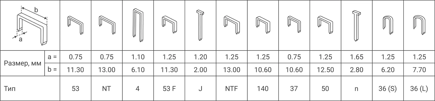 Маркировка скоб, например «тип 53», — это не расшифровка размеров, а условный номер стандарта, закрепленный за определенной геометрией расходного материала. Цифры не обозначают какой-либо параметр, они лишь идентифицируют типоразмер.