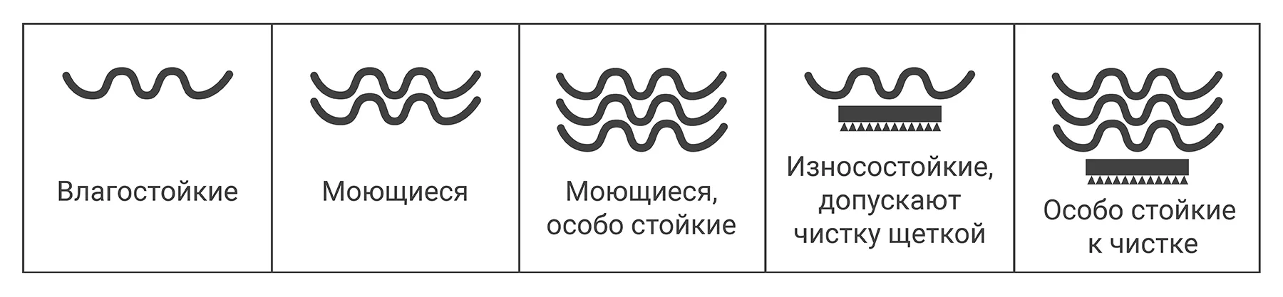 - три волны — покрытие устойчиво к мытью губкой с деликатным моющим средством