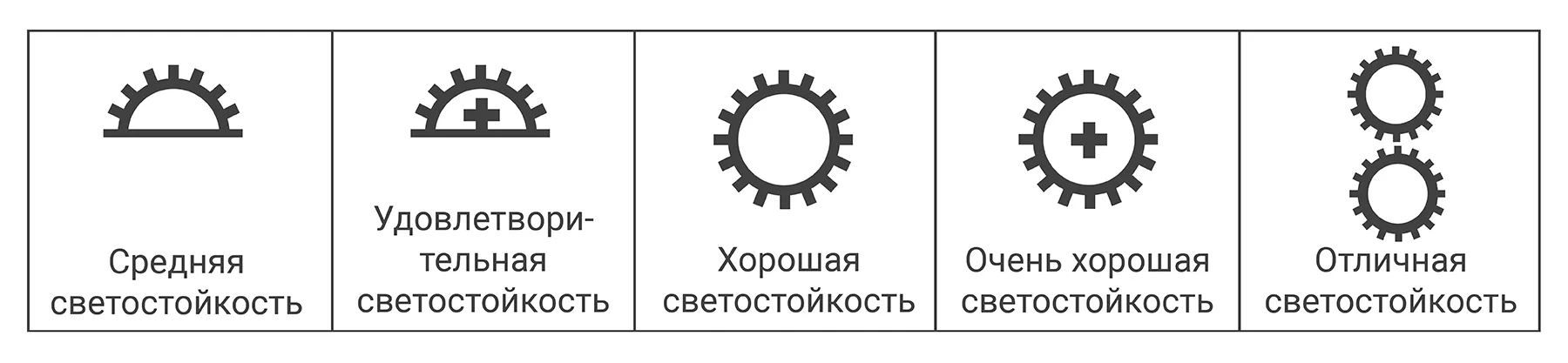 - Половина солнца и знак плюс указывает на удовлетворительную стойкость к ультрафиолету. Отделка подойдет для комнат с умеренной естественной освещенностью.