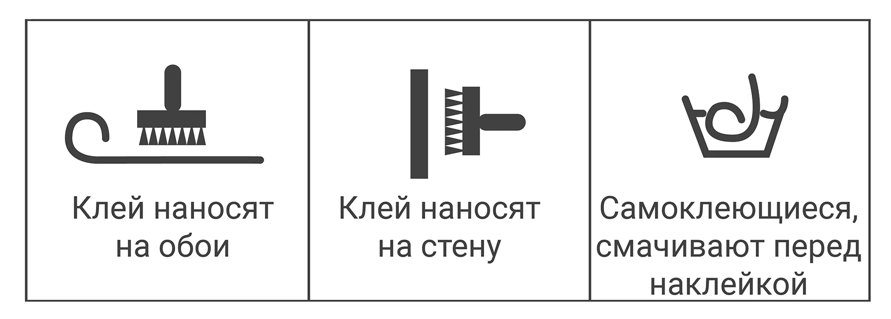 Такое обозначение на обоях указывает, как правильно наносить клей на полотно. Чтобы оно хорошо приклеилось и держалось на стене, не пренебрегайте этими значками.