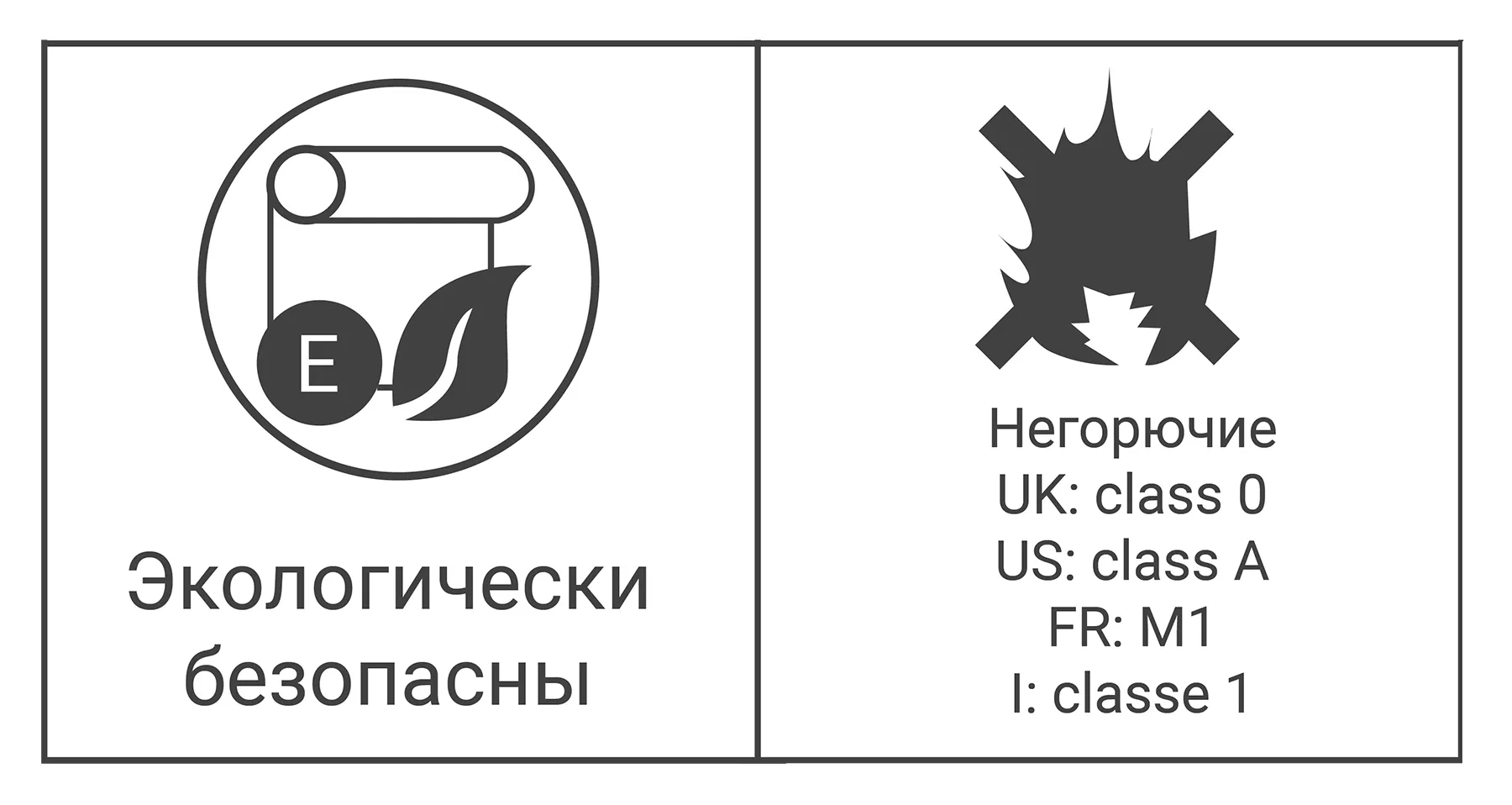 Отдельно выделим маркировку, которая указывает на класс пожароопасности обоев, поскольку это одно из главных требований к отделочным и строительным материалам. Он определяется на основании испытаний и отражает степень горючести, воспламеняемости покрытия, выделения токсичных продуктов при горении, дымообразования, а также скорость распространения огня.