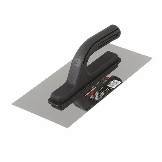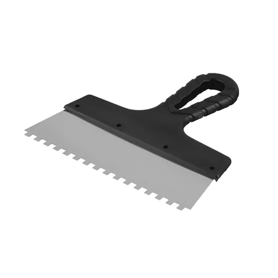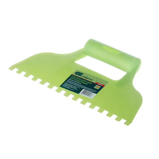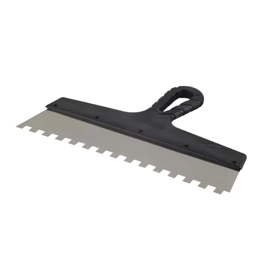 - Нанесение клея на пол зубчатым шпателем, на керамогранит — гладилкой.