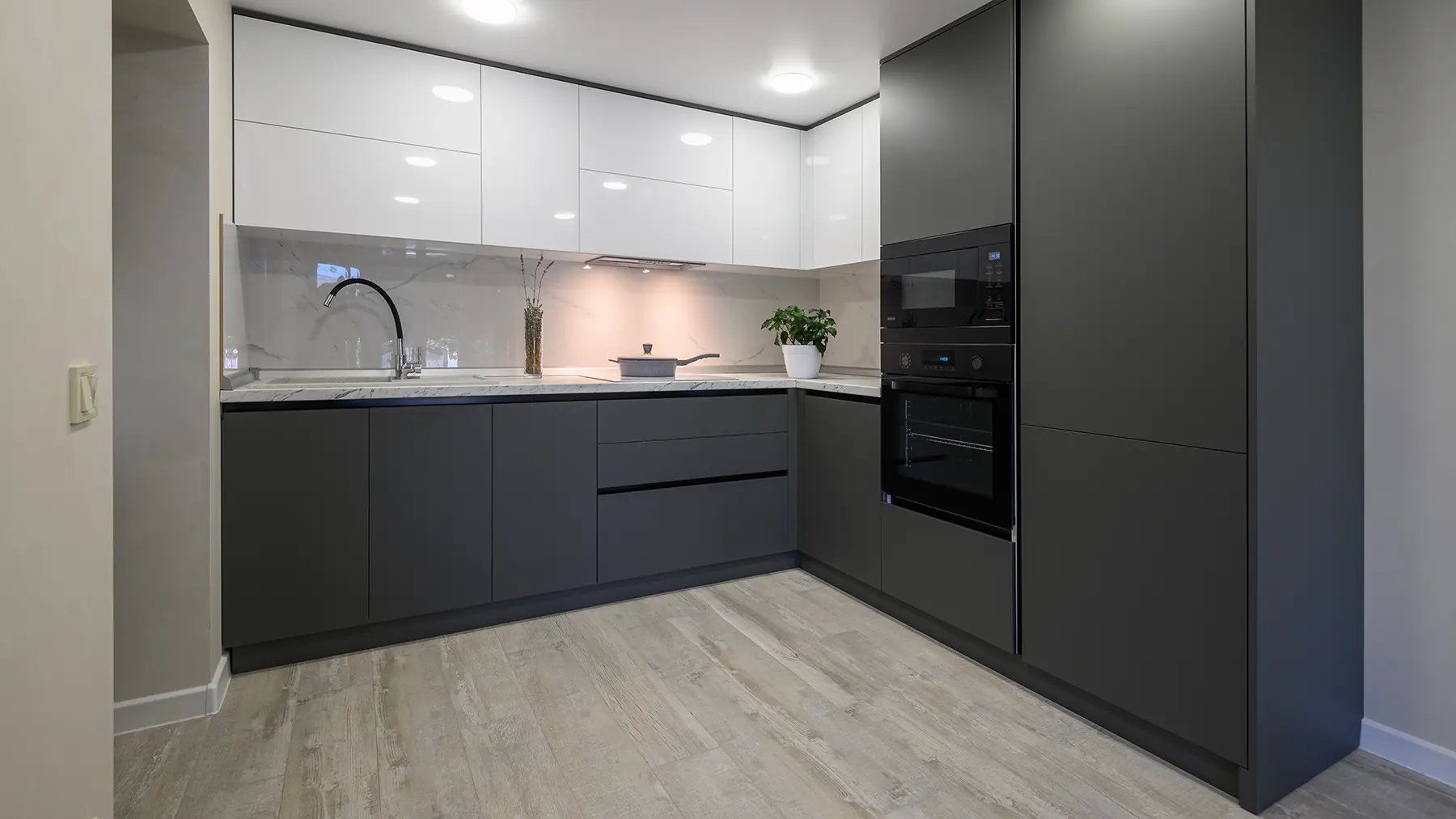 Ламинат выигрывает по дизайну и износостойкости, но с учетом условий на кухне нужно брать минимум 33 класс. Под раковиной и посудомоечной машиной покрытие желательно защитить ковриком, чтобы исключить попадание воды.