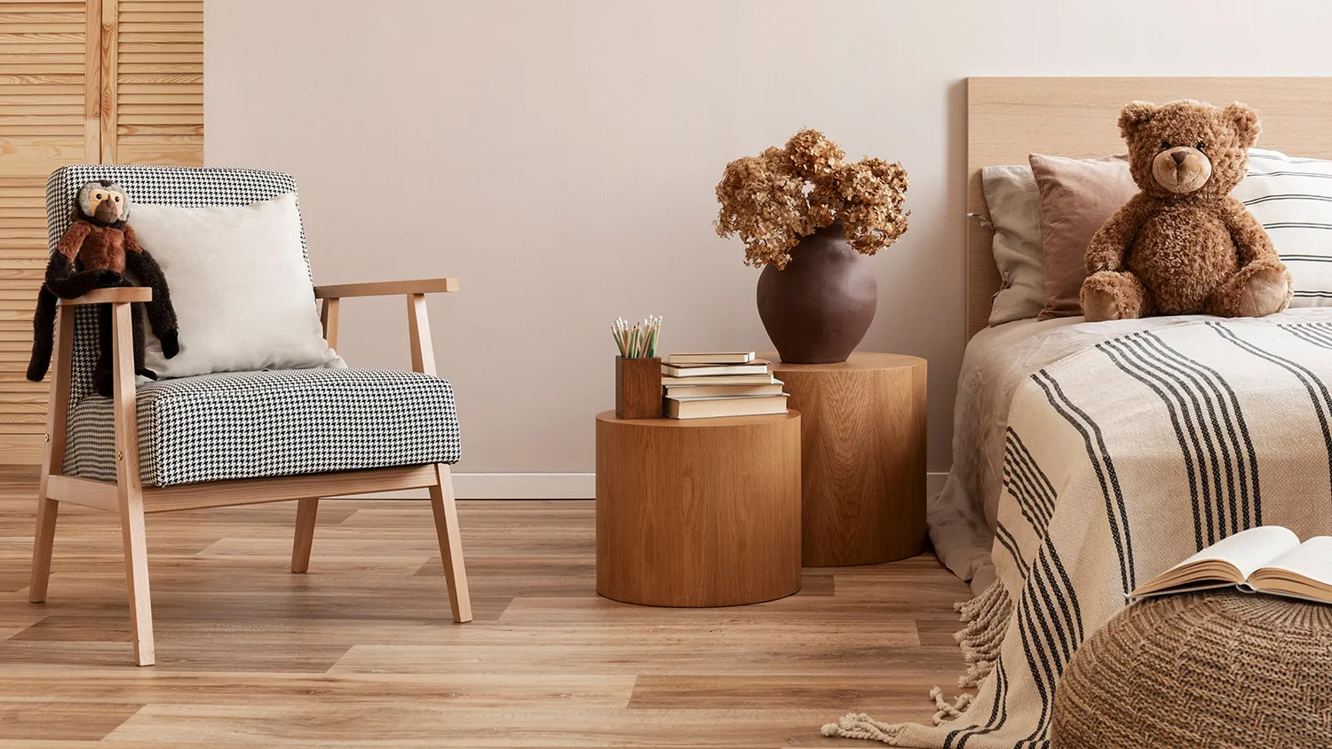 Для детского интерьера особенно важна экологичность. Покрытия должны быть без формальдегидов: