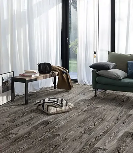 Гетерогенный линолеум предлагает большой выбор цветов и узоров. Защитный слой позволяет использовать яркие красители, например кислотный зеленый. Но чаще всего покупатели выбирают узор под дерево нейтрального бежевого цвета, без рыжины или белесых полос. Гетерогенный линолеум покупают для дома или офиса со средней проходимостью.
