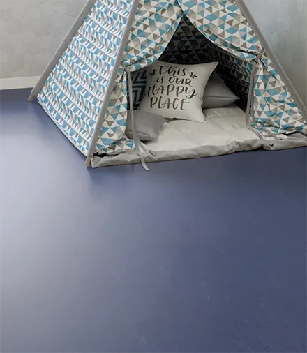 Толщина линолеума зависит от количества слоев. Понятно, что гомогенный будет тоньше гетерогенного. По стандарту линолеум выпускают от 1,8 до 6,5 мм. Большая толщина не значит, что линолеум самый качественный. Это заблуждение, потому что у толстого покрытия будет больше вес — оно будет больше проминаться. Толстый линолеум скроет все неровности пола и даст ощущение мягкости. Его лучше укладывать в детских комнатах, чтобы снизить травмоопасность во время активных игр. Но он сильнее пострадает от продавливаний ножками дивана или ходьбы на каблуках. В таком случае производитель пишет на товаре: «Использовать подпятники под мебель».