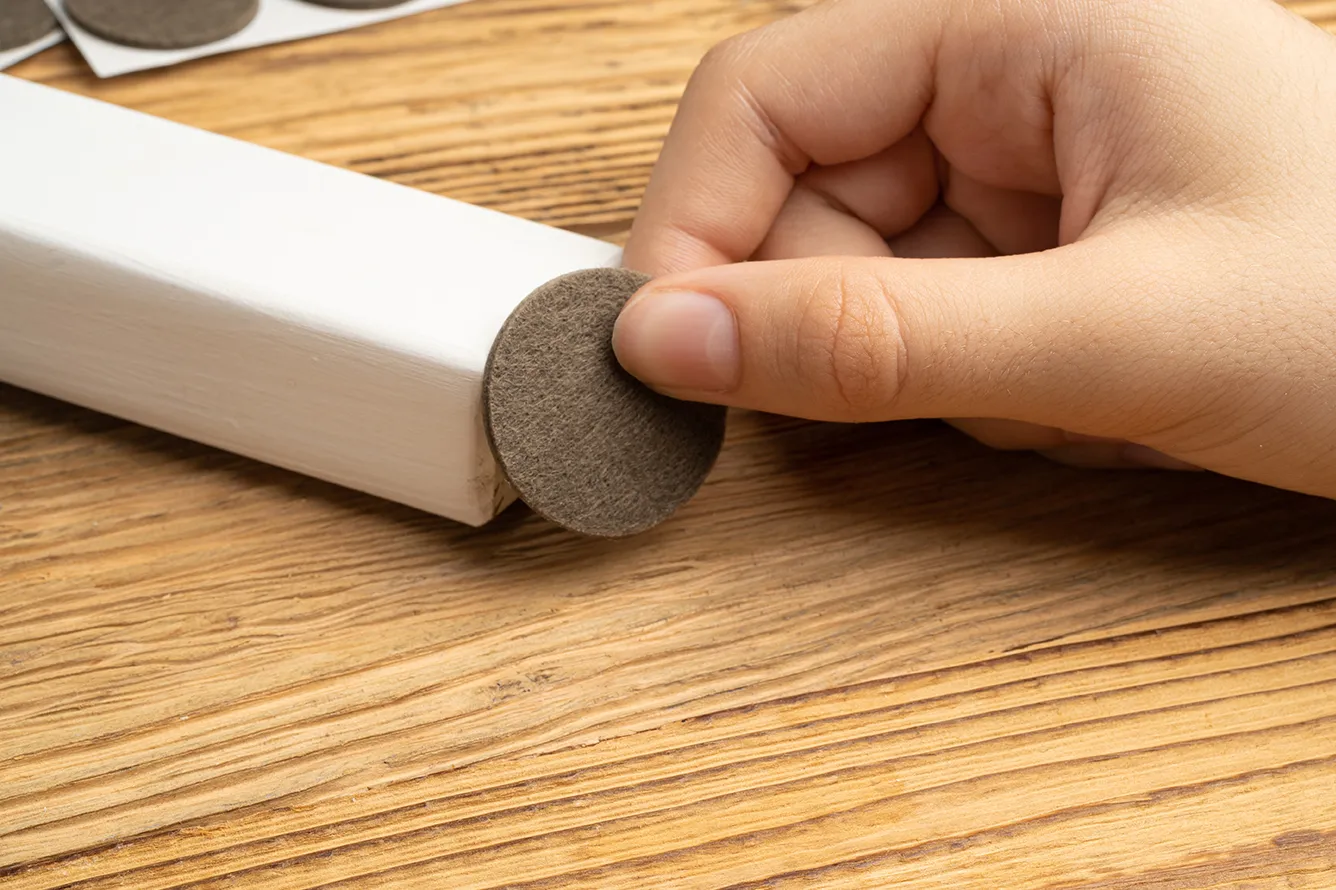 Наклейте на ножки мебели защитный слой, чтобы защитить покрытие от царапин. Источник: shutterstock.com