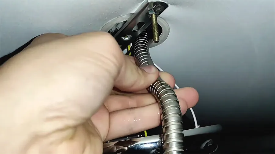 - Вода часто скапливается рядом со светильником, люстрой или в месте выхода монтажных проводов. Если не отключить питание, возникает риск короткого замыкания.