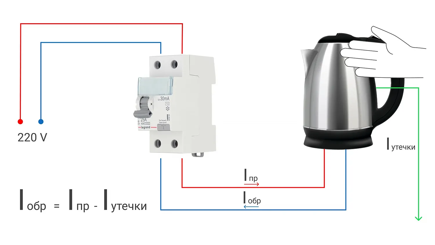 На превышение мощности тоже срабатывает автоматический выключатель. Однако такая ситуация часто приводит к перегреву и, как следствие, незначительной утечке тока. Защитный модуль фиксирует ее и обесточивает линию.