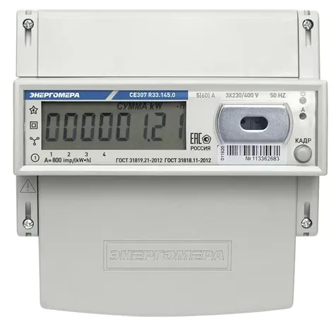 Диапазон допустимого тока однофазных счетчиков — от 5 до 80 А, трехфазных — от 5 до 100 А. Данные о допустимой силе тока указаны на передней панели тока в виде цифро-буквенной комбинации — например, 5(60) А. Меньшее число — это нижняя граница диапазона допустимого тока, который счетчик может измерить без искажений. Большее число — это максимальный ток, который счетчик может измерить. Если ток превысит максимальное значение, то счетчик допустит ошибку в измерении или сломается.