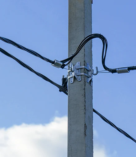 Работайте в сухую погоду при температуре не ниже –20 °С, лучше с помощником. Сначала вам нужно будет закрепить СИП на столбе — для этого с помощью монтерских когтей-лазов поднимитесь по нему к линии электропередач. Затем другой конец провода прикрепите к фасаду дома.