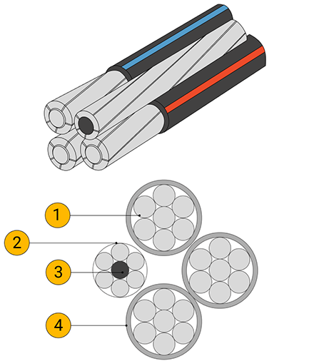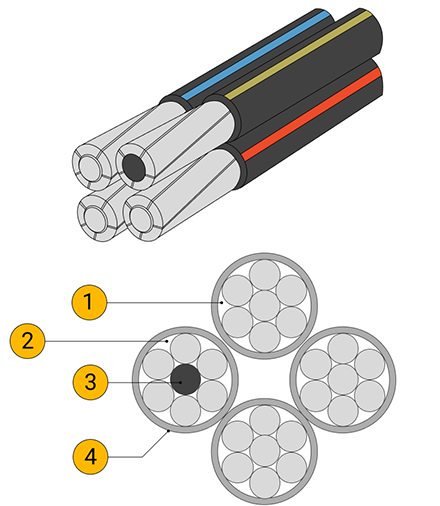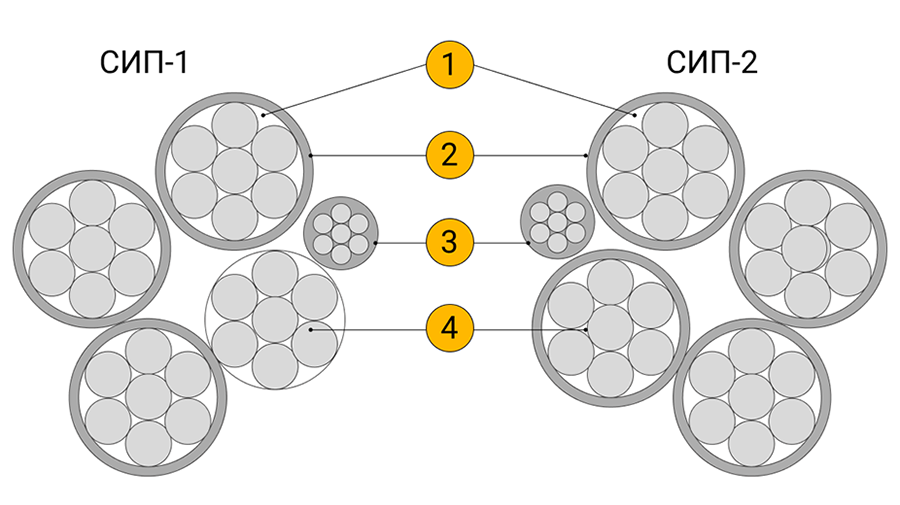 Токопроводящие жилы СИП представляют собой несколько алюминиевых проводников, свитых между собой. В зависимости от функций различают такие виды жил: