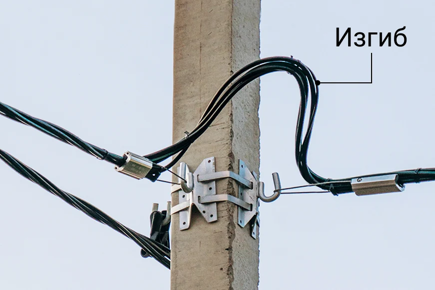 С помощью бандажного комплекта закрепите на столбе анкерный кронштейн. Наденьте на провод анкерный зажим и прикрепите его к кронштейну. Учтите, что радиус изгиба СИП должен быть не меньше 10 диаметров провода. Измерить его нельзя — определяйте на глаз.