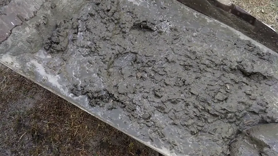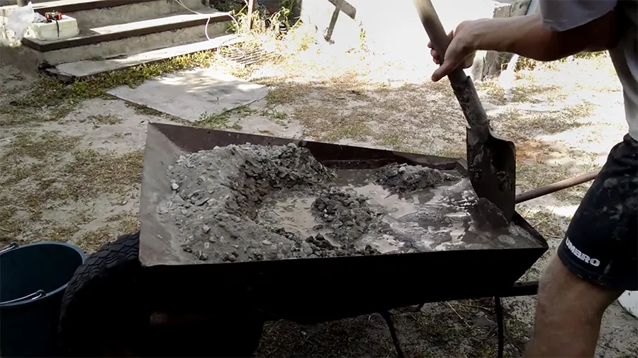 - Выгрузите бетон в тачку или корыто и переходите к укладке.