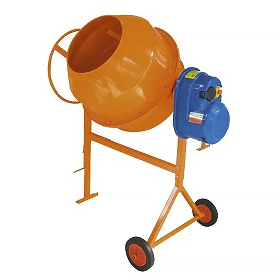 - Запустите бетономешалку и выставьте барабан под рабочим наклоном по инструкции производителя. То есть так, чтобы смесь внутри перекатывалась, а не прилипала к стенкам. Обычно это угол в 15–20 градусов.