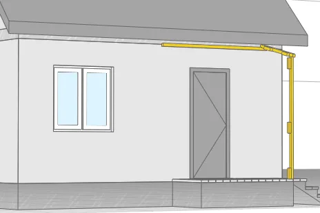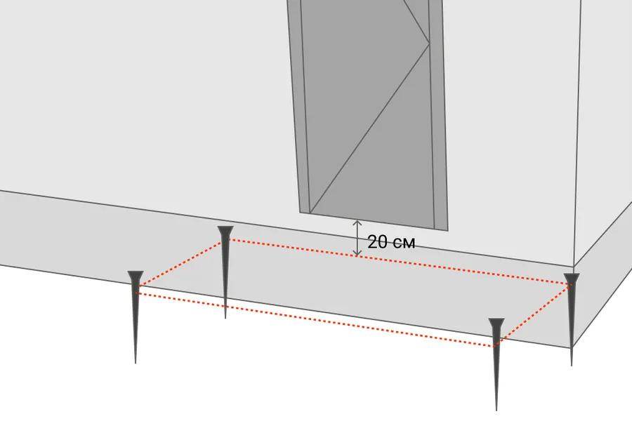 - На прочерченной линии отметьте места, где углы крыльца будут примыкать к стене. Забейте в этих местах колышки.