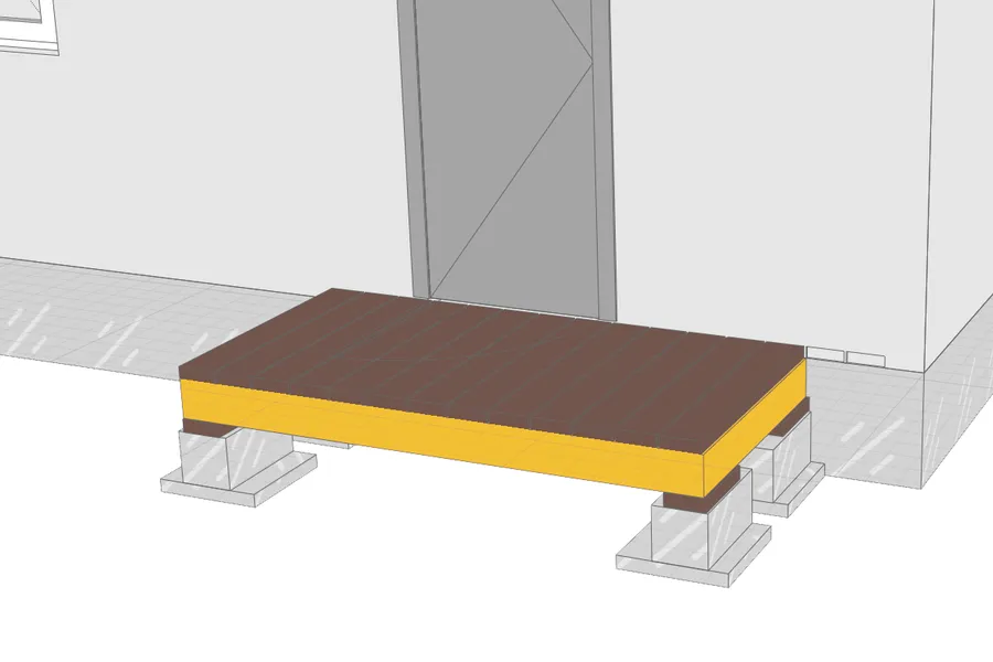 В нашем примере мы будем делать площадку 2 м длиной и 1 м шириной. Это необходимый практический минимум: такое крыльцо несложно сделать своими руками, и для него не потребуется много материалов.