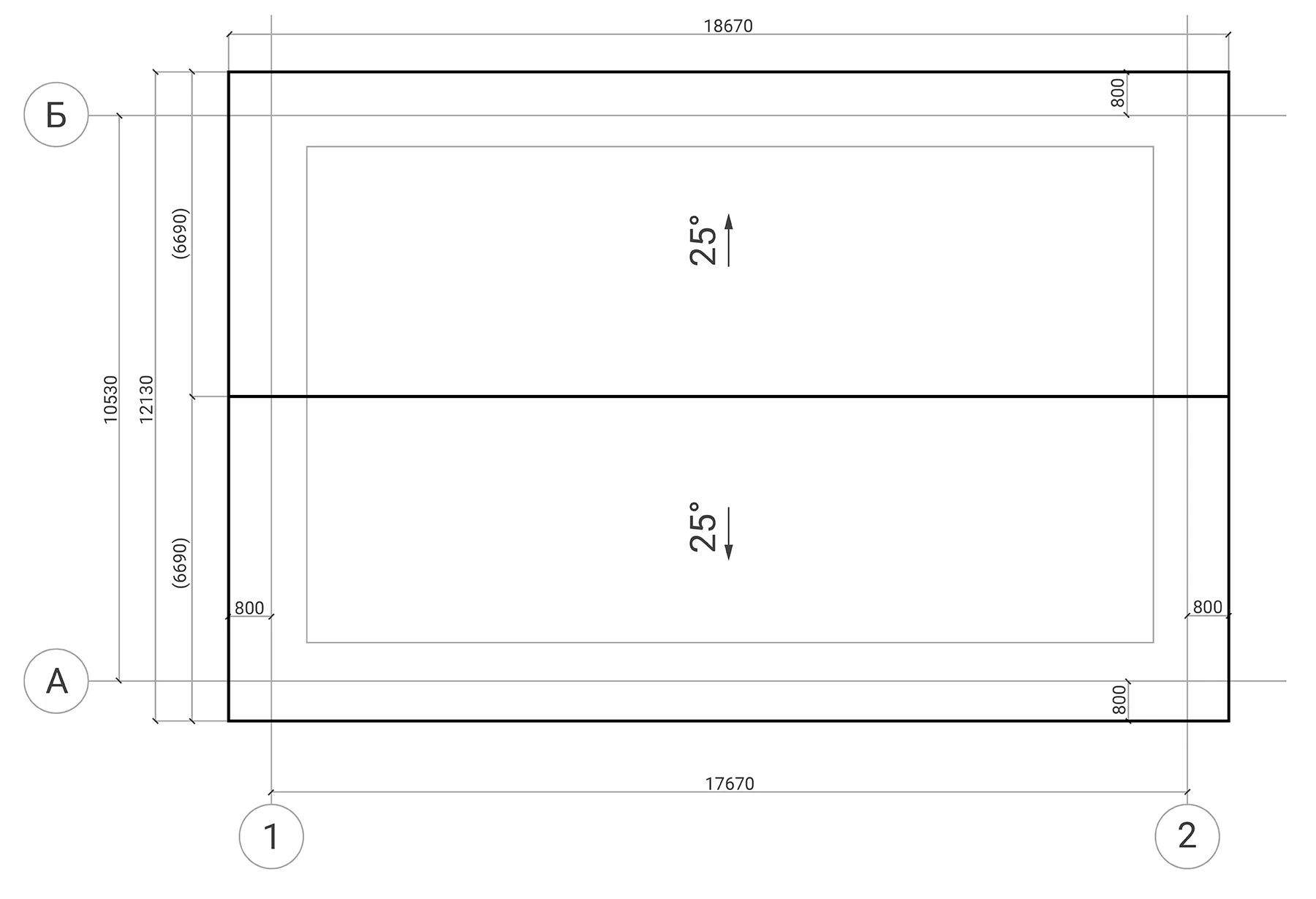 Пример расчета для дома с двускатной крышей и следующими параметрами: