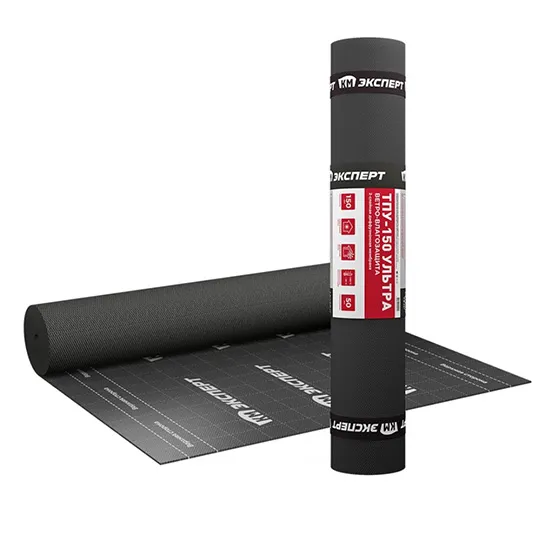 Ветро-влагозащитную мембрану, которая защищает от конденсата с улицы, укладывают поверх утеплителя также с нахлестом 100–150 мм и фиксируют к стропилам скобами с помощью степлера.
