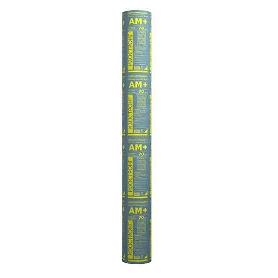 Со стороны помещения утеплитель закрывают пароизоляционной пленкой — она защищает от увлажнения паром, который содержится в теплом воздухе. Полотнища монтируют с нахлестом 100–150 мм, стыки проклеивают специальной лентой-скотчем.