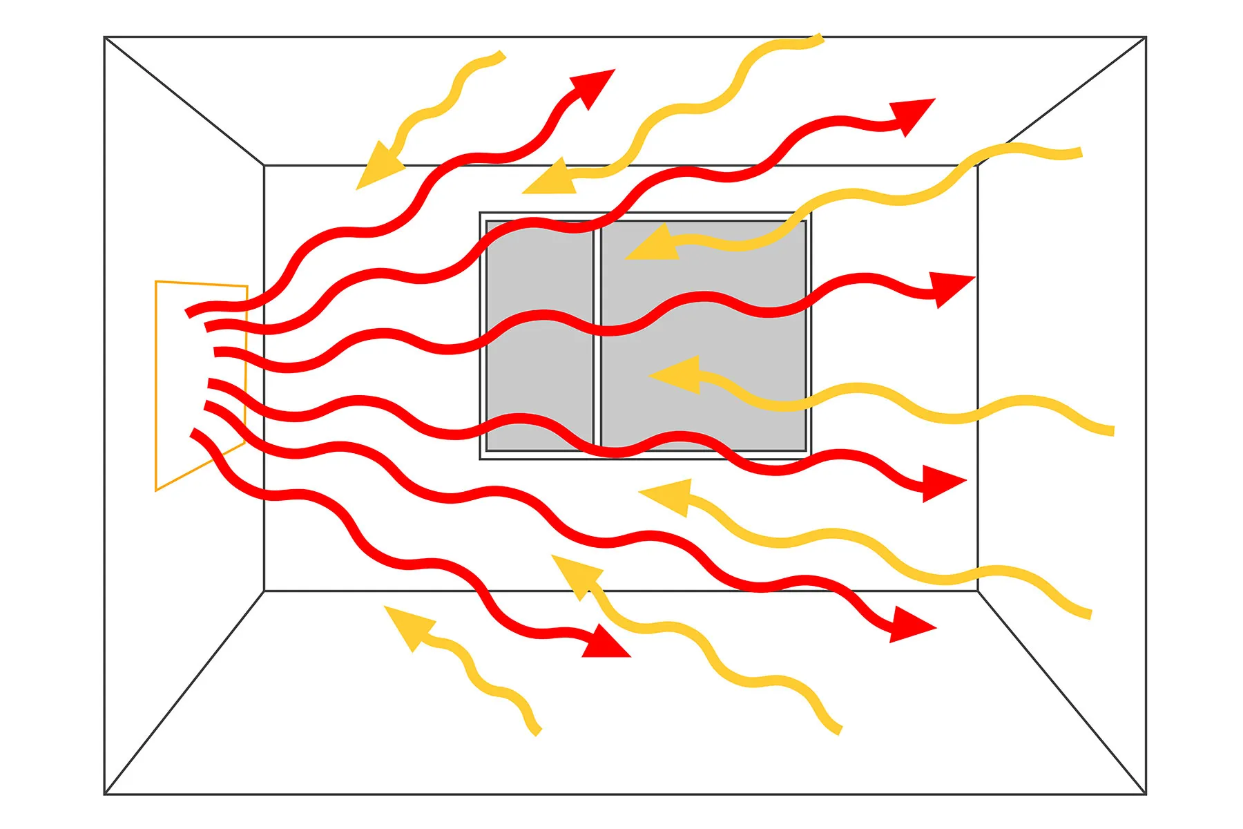 Работа ИК-обогревателей основана на излучении электромагнитных волн, схожих с теми, что мы получаем от Солнца. Эти волны прогревают не воздух, а все поверхности и предметы в помещении, а уже они отражают полученное тепло.