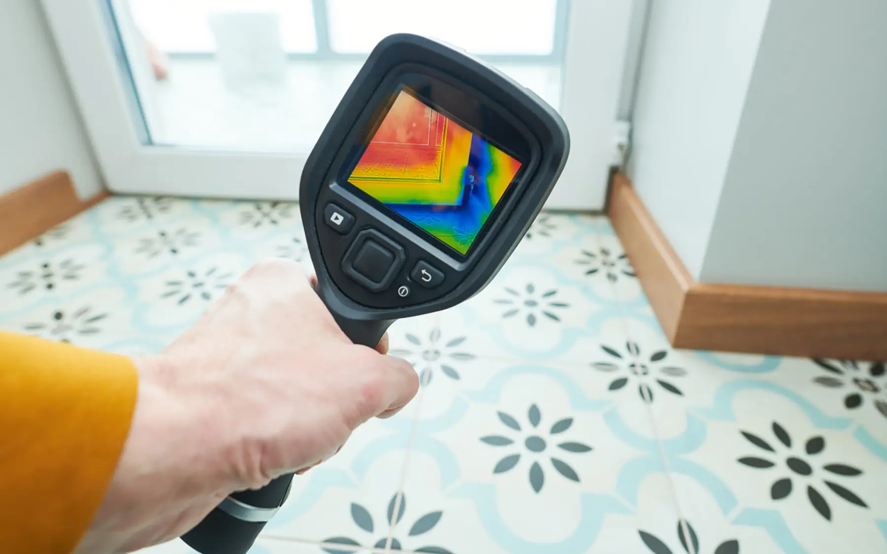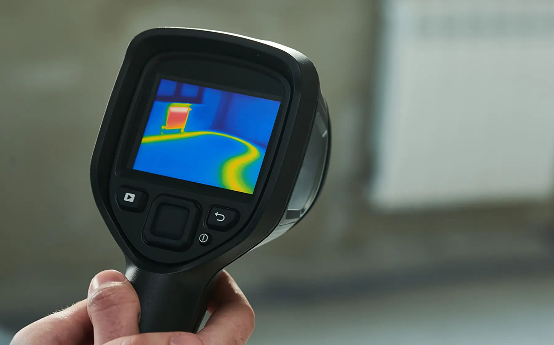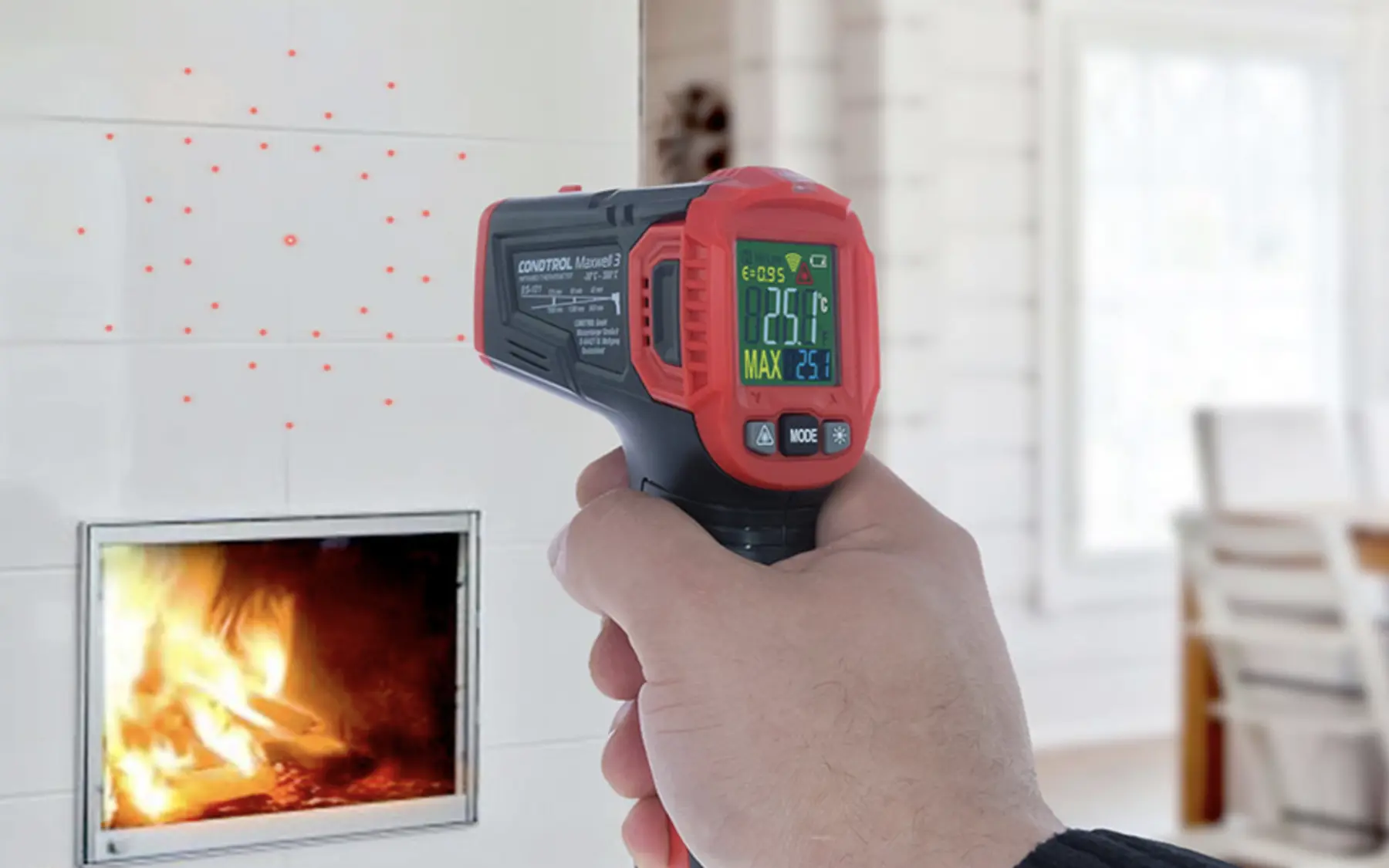 - Для проверки теплопотерь в квартире. При помощи пирометра можно обнаружить продувы возле окна: температура стены там будет ниже.