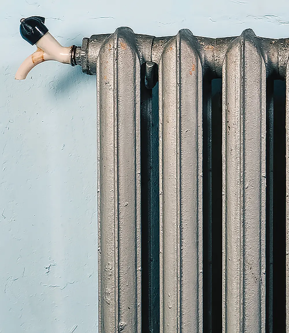 Если вам необходимо выпустить воздух из батарей, не оборудованных воздухоотводчиком, без помощи специалистов не обойтись. Эта ситуация типична для старых домов, в которых установлены чугунные радиаторы или конвекторы в виде «гармошки». На них клапанов для выпуска воздуха обычно не бывает. Конечно, если на батарее есть кран, можно осторожно выпустить воздух через него. Но самостоятельно делать это опасно.