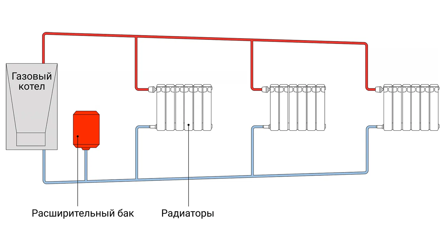 - Рассчитайте количество теплоносителя. Сложите объем трубопровода, радиаторов, котла и расширительного бака.