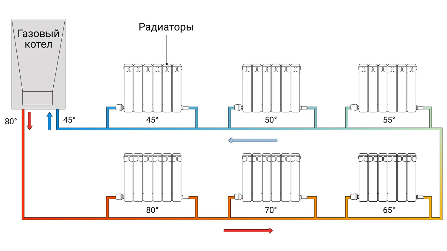 Узнайте большеРабота систем отопления основана на непрерывной циркуляции теплоносителя, нагреваемого котлом. Жидкость перемещается по трубам к батареям, которые получают тепло и передают его в помещение. После этого поток остывает, направляется обратно к котлу, и цикл повторяется.