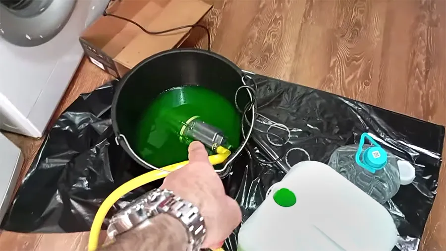 - Подготовьтесь к заполнению отопительной системы. Если теплоноситель в виде концентрата, разбавьте его по инструкции производителя до нужного температурного диапазона дистиллированной водой.