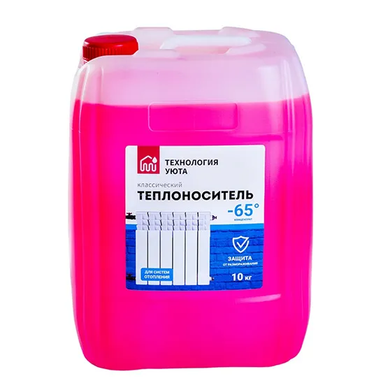 Теплоноситель с пропиленгликолем экологичный и нетоксичный. Подходит для отопления в частных домах, социальных объектах и других помещениях, где важна безопасность людей и животных. Допустим для теплых полов и теплообменников для нагрева бытовой воды.