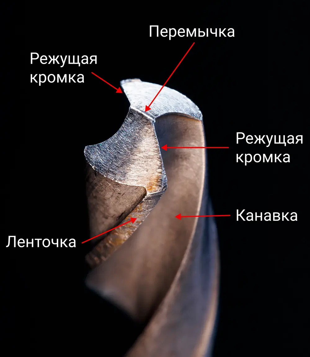 В первую очередь, чтобы правильно заточить сверло, нужно понимать, как оно устроено и за что отвечает каждый элемент: