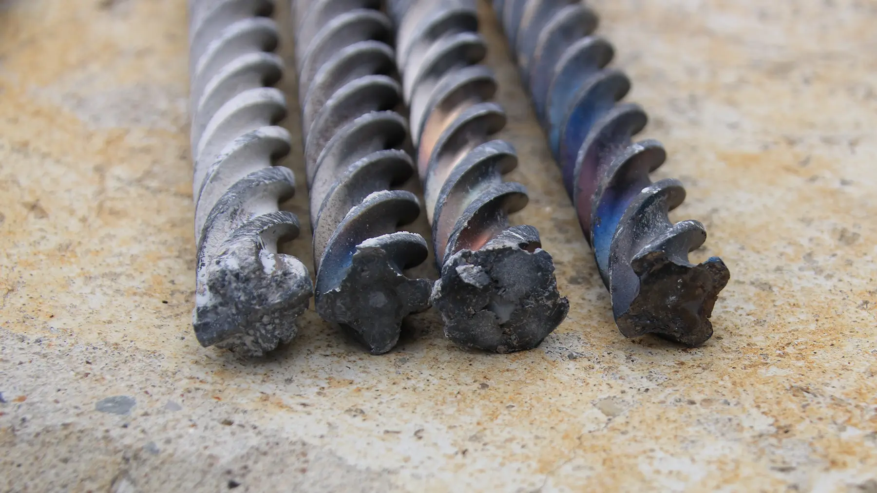 - Нагрев и потемнение рабочей части. Синий оттенок на поверхности сверла — признак перегрева и того, что дальнейшая работа только ухудшит состояние оснастки.