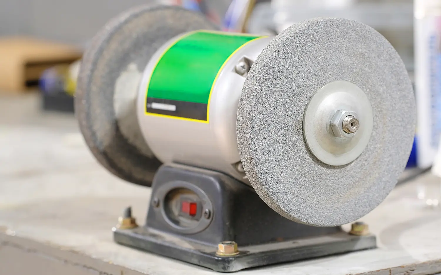 - Перед началом работы убедитесь в исправности абразивного круга: на нем не должно быть трещин, сколов или других признаков повреждения. Круг должен быть надежно закреплен на шпинделе станка, а защитный кожух — правильно установлен и полностью перекрывать вращающуюся часть.