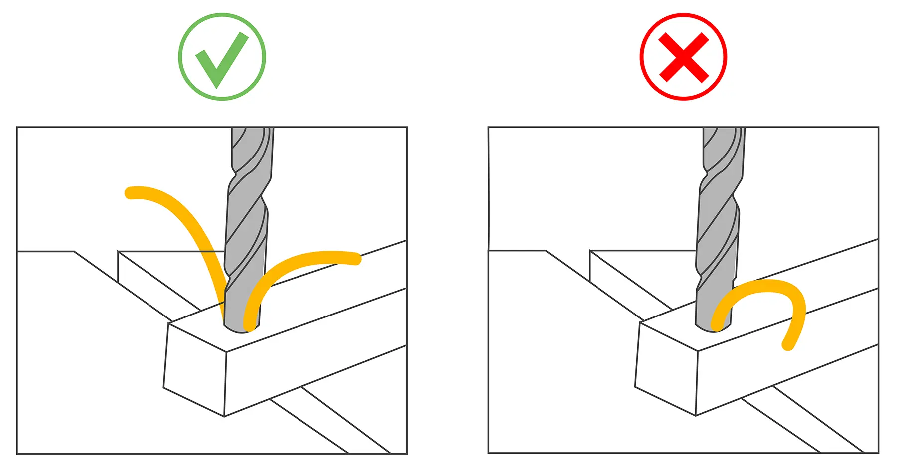 - Сверло входит в материал плавно, без рывков.