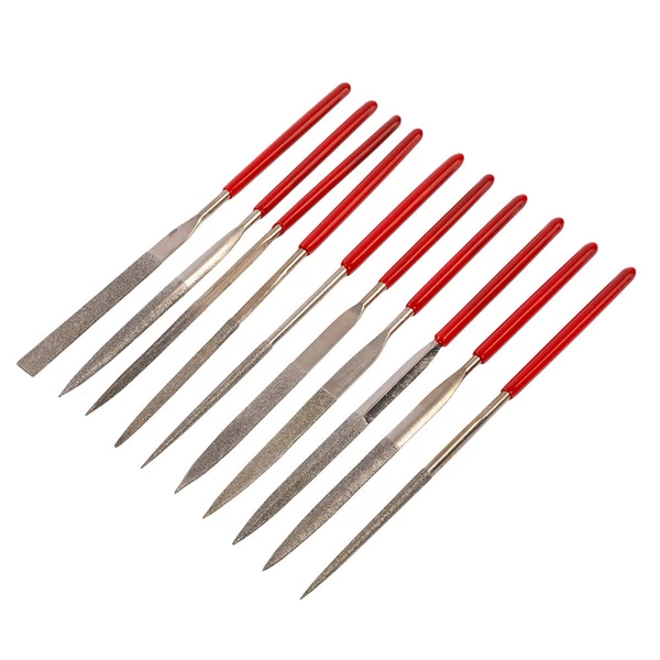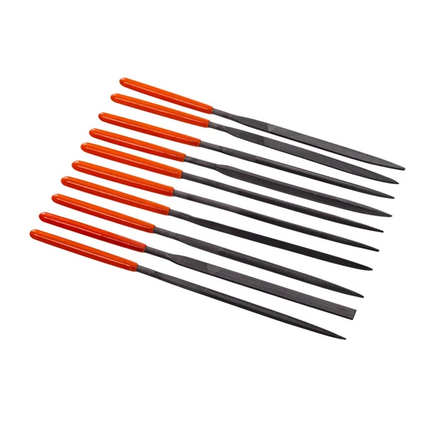 - Надфиль. Небольшой ручной напильник с мелкой насечкой подходит для мелкой доводки, удаления заусенцев, коррекции угла заточки на очень тонком уровне. Используют со сверлами до 2–3 мм, когда уже есть базовая заточка, но нужно подровнять кромку.