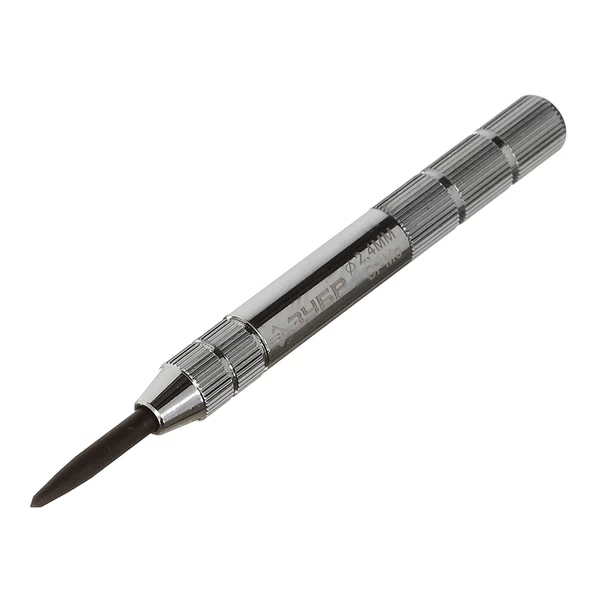 - Всегда накерняйте центр будущего отверстия — делайте небольшое углубление с помощью кернера и молотка. Эта вмятина фиксирует вершину сверла в нужной точке, предотвращает его проскальзывание и увод при запуске. Благодаря этому перемычка не будет перегружаться, а боковые режущие кромки не затупятся преждевременно.