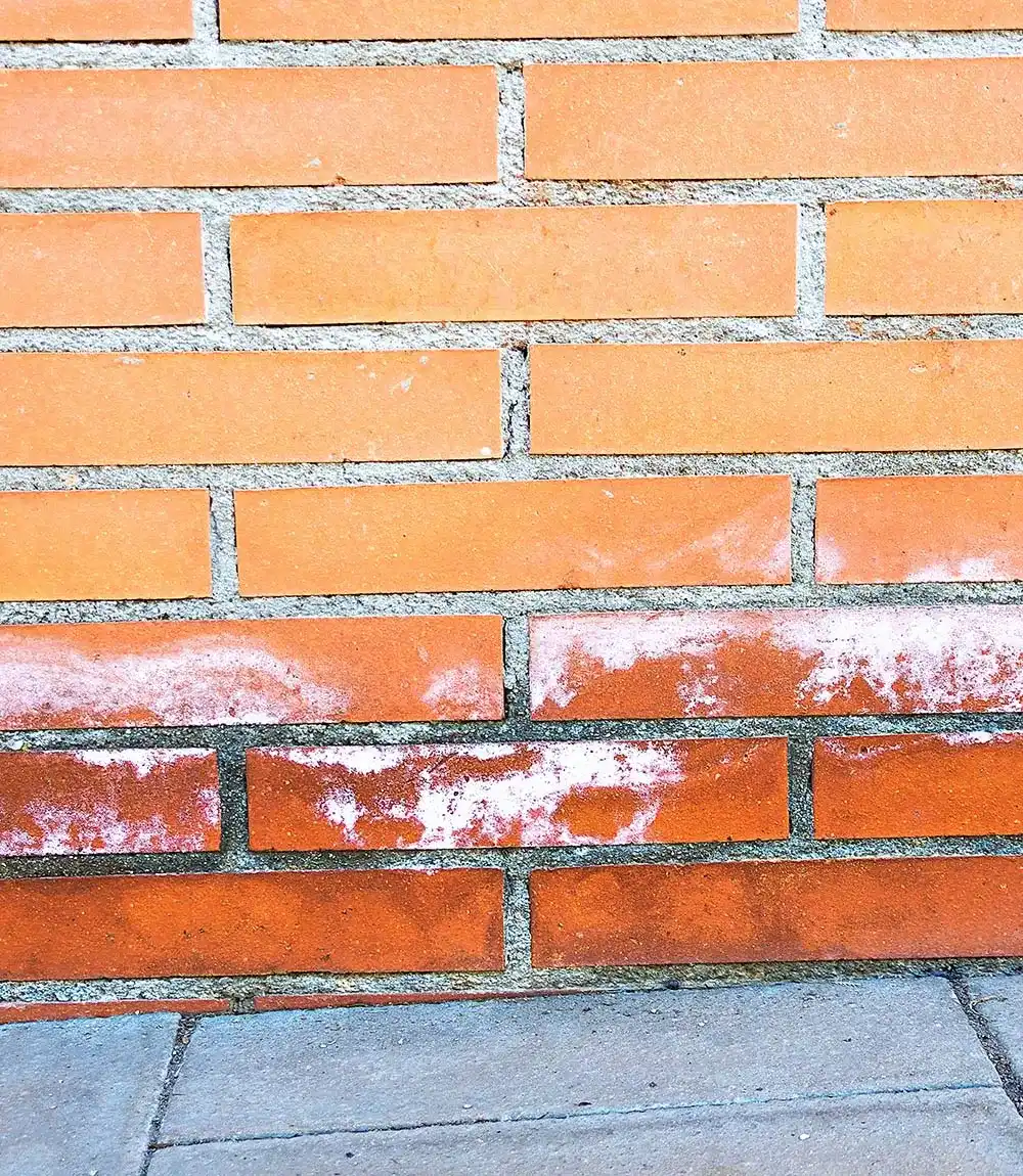 - на поверхности проступили высолы — белесый налет солевых отложений