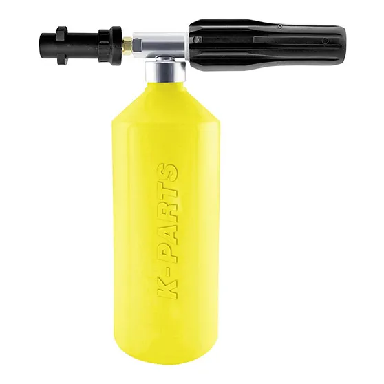 Сначала нужно очистить фасад от загрязнений. Способ мытья выбирают в зависимости от их вида и интенсивности. Для орошения водой и удаления чистящего средства удобно использовать минимойку высокого давления (можно взять в аренду). Наносить моющий раствор легче с помощью насадки-пеногенератора. Она создает густую активную пену, которая мягко, но эффективно очищает поверхность.